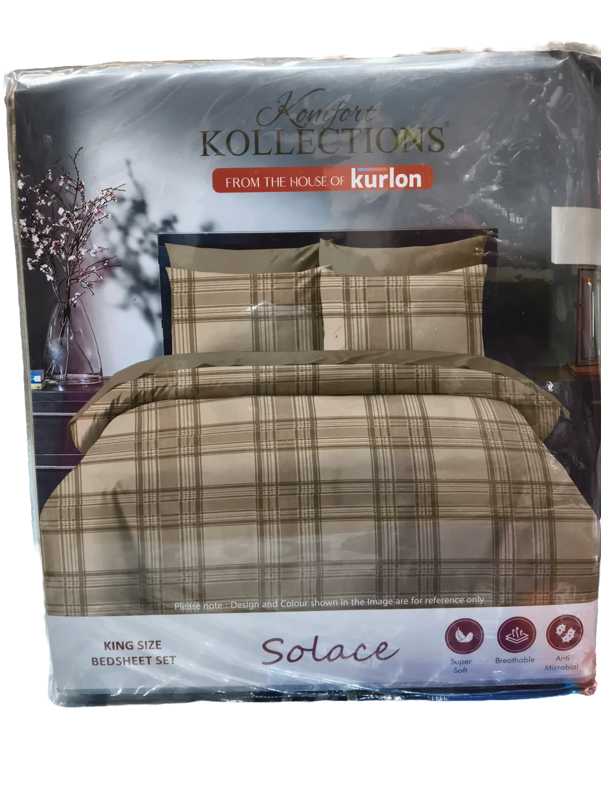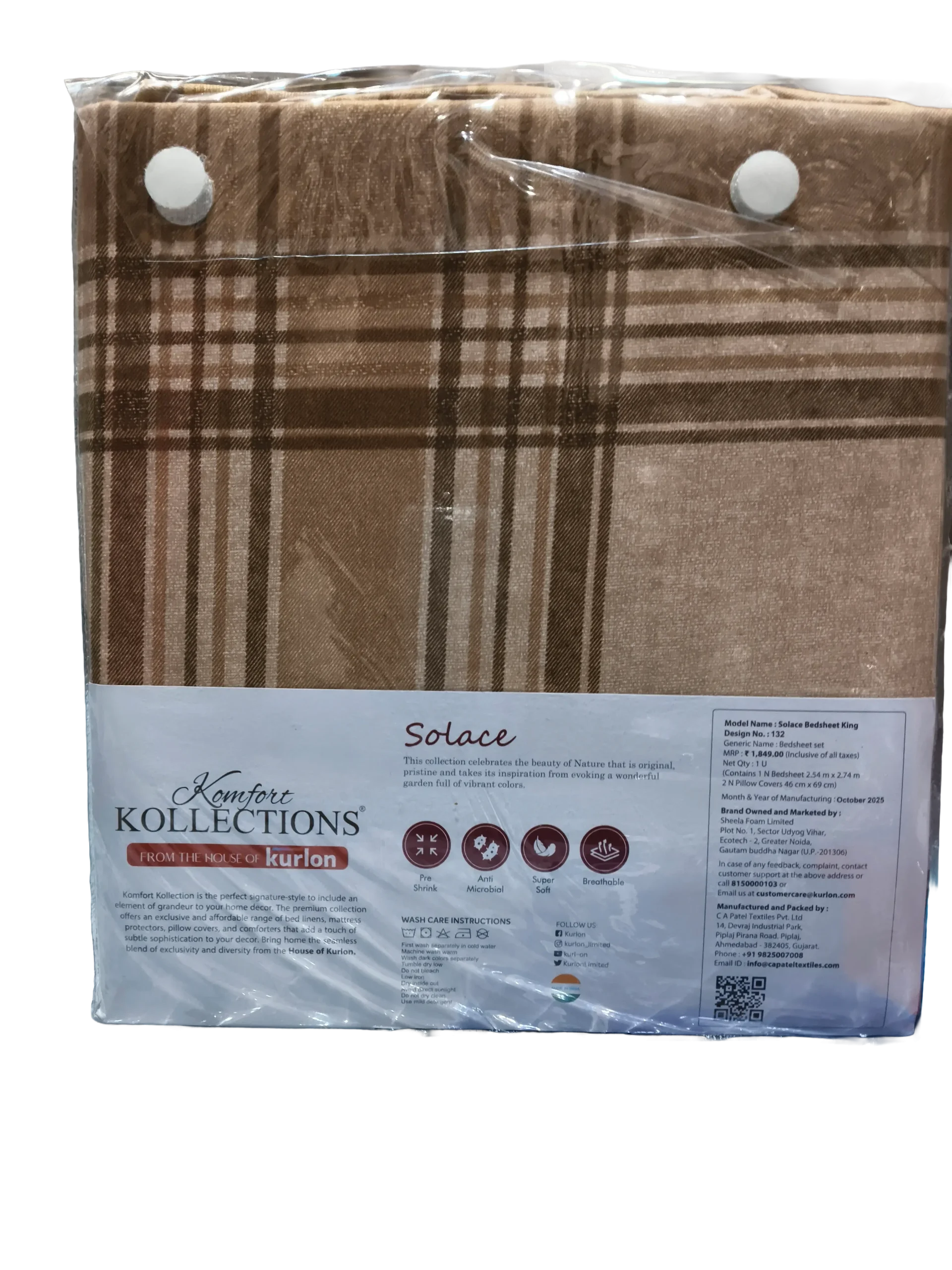 Upgrade your bedroom with this elegant Solace King Size Bedsheet Set from Komfort Kollections, crafted for everyday comfort and long-lasting use. Made from premium polycotton fabric, it feels super soft on the skin and stays breathable throughout the year. The stylish brown check design adds a modern touch to your bedroom décor.
